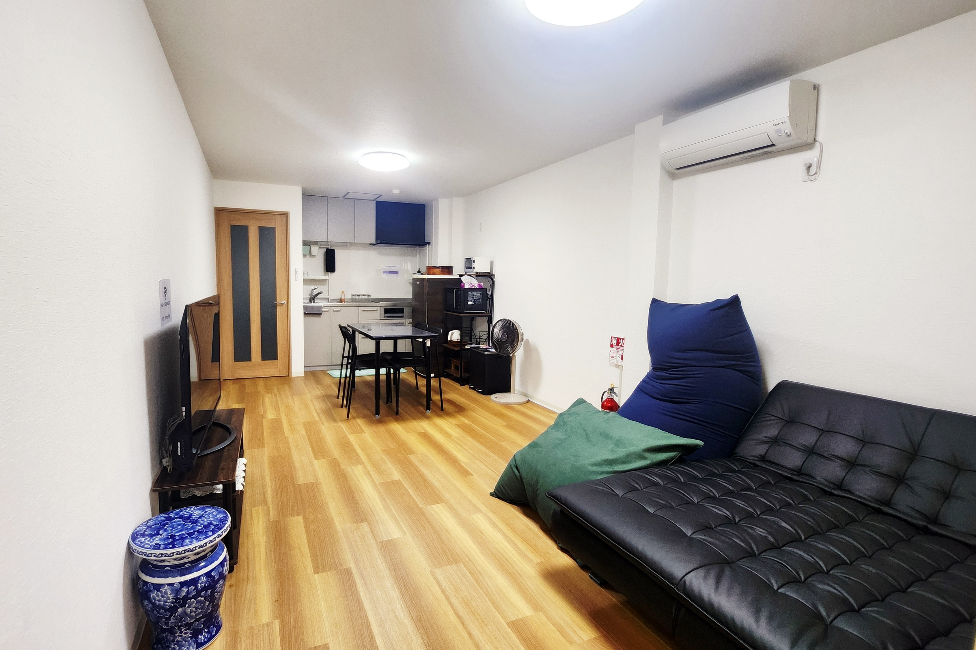 Im GS HOUSE genießen Sie einen großzügigen 2LDK-Grundriss. Bietet Platz für bis zu 6 Personen (Betttypen: D①, SD①, S②, 1 Schlafsofa). Es gibt auch einen Balkon, auf dem Sie entspannen und die Umgebung genießen können.